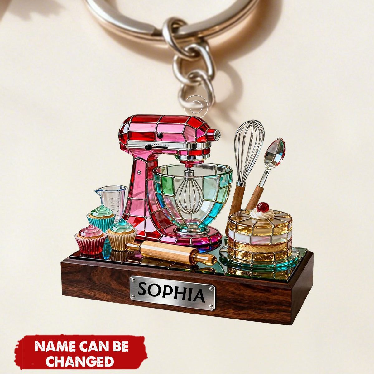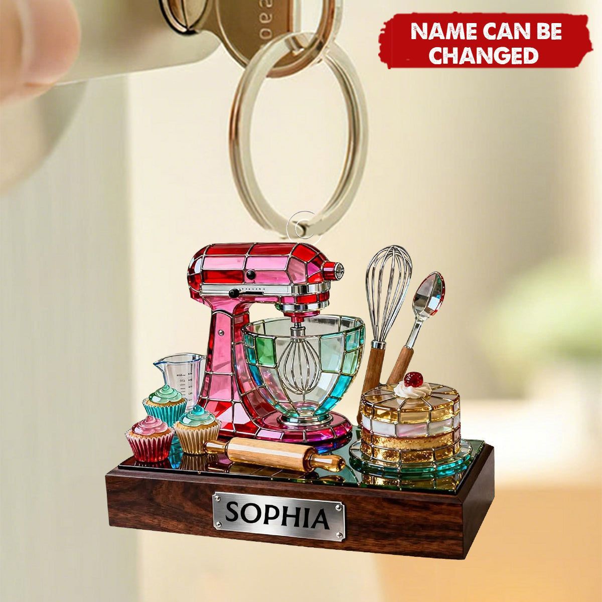 Llavero mezclador para hornear personalizado, decoración de cocina de acrílico colorido con nombre personalizado