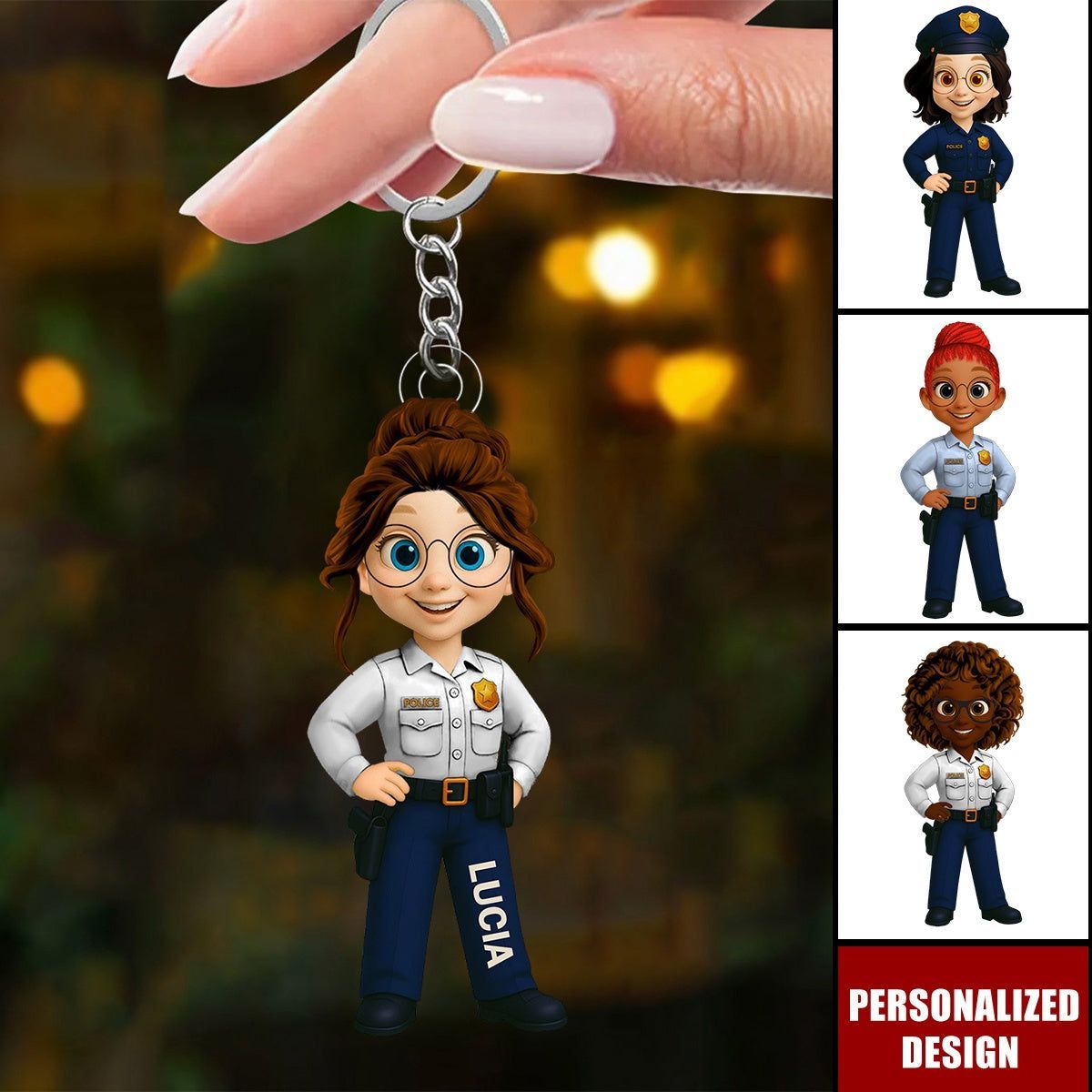 Personalizada mujer oficial de policía personaje de dibujos animados llavero-regalo para aplicación de la ley