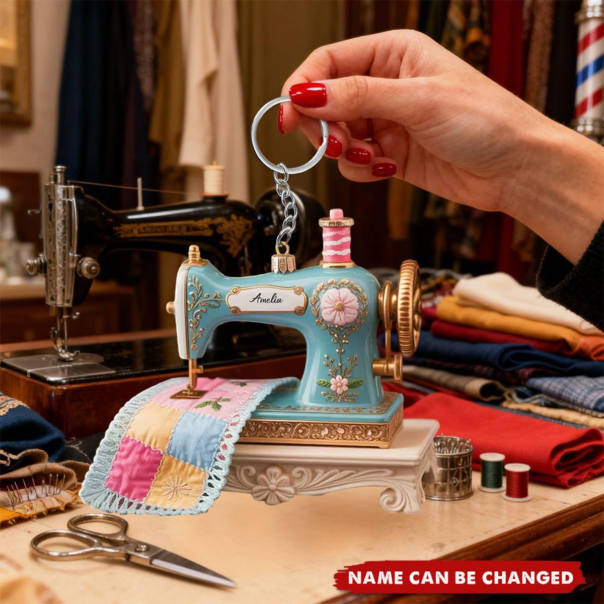 Máquina de coser Quilter personalizado acrílico llavero-costurera regalo